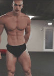 Immediately pulling the black short pants off, he now stood in boxer briefs. His excitement at standing before his master was now impossible to hide. Lifting up his arms, he flexed again.