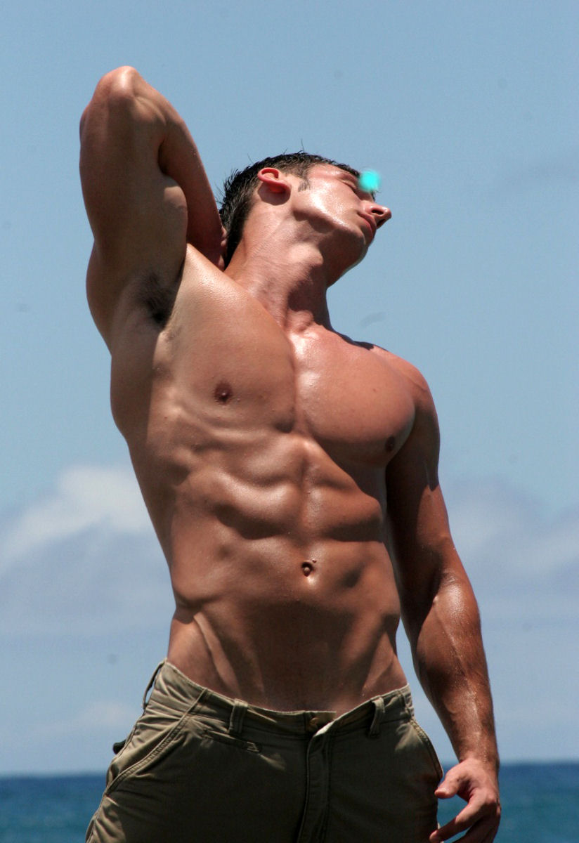 The slave obeyed. He put his hands behind his head, which he turned to kiss his shoulder. He flexed his biceps and crunched his stomach, showing every muscle in as sharp relief as possible in the sunlight.
