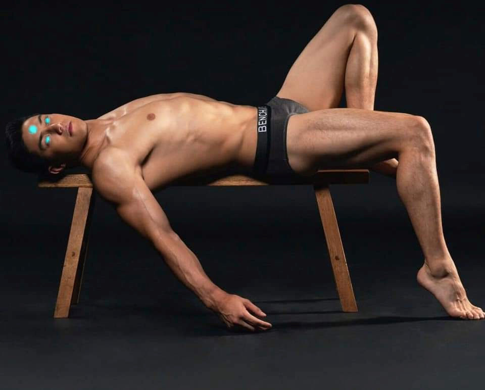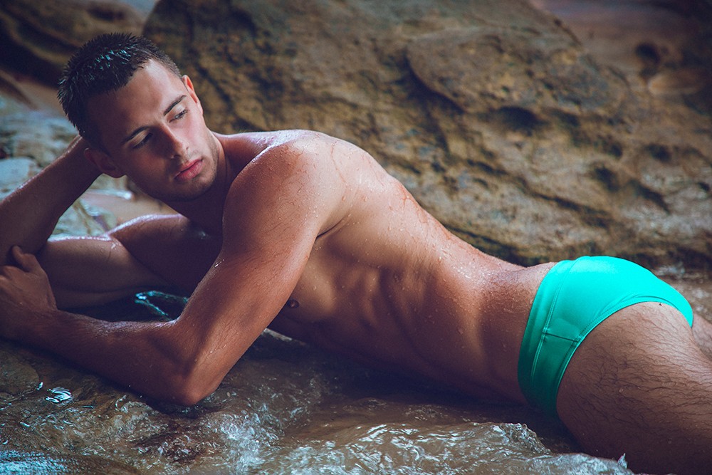 Now Quinn was facing the server. He had nothing on now but his skimpy underwear, which he had pulled in back all the way below his buttcrack.