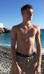 "Seems you like what you see," the stranger said, looking at Aiden's crotch. "I think that buzzcut doesn't do you any favors. Besides that, I'm liking what I'm seeing. I'd like to see more."