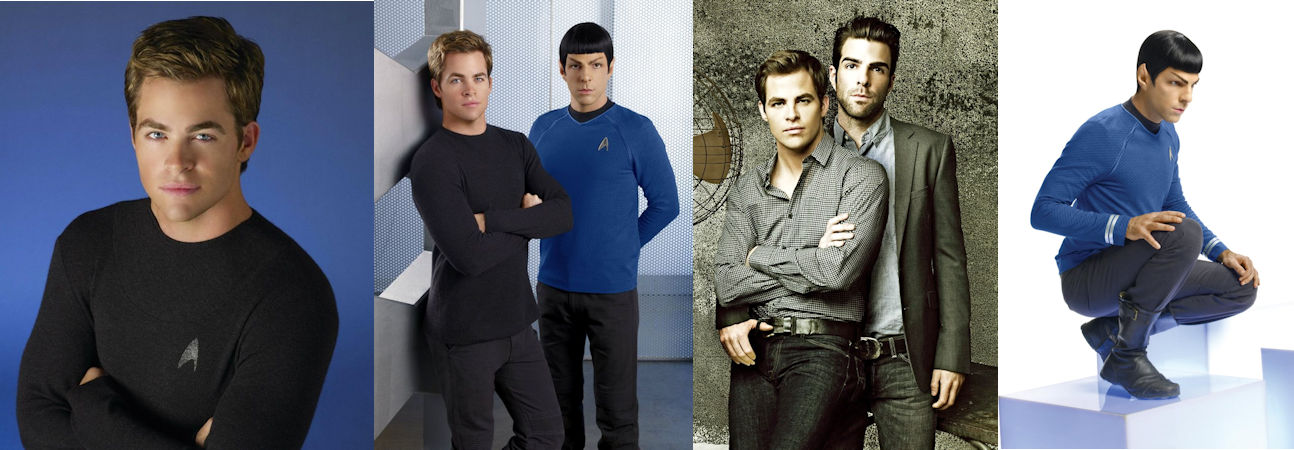 Neither had wasted time. Garrett was on his back being fucked by Kirk, who in turn was being fucked by West. Spock was also in the middle of the two men he was with. But in his case, he was sucking Michaels while being fucked by Bradley.