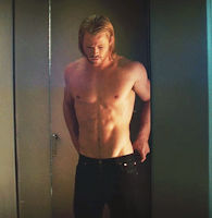 Another man appeared from behind the throne. This one Thor recognized. It was his fellow Avenger Steve Rogers, known as Captain America. He was wearing a version of his normal costume. However, the top was mesh, allowing much of his prodigious physique to be displayed. Instead of pants, he had on bright turquoise shorts that barely went past the crotch.