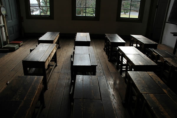 A bell rang and a batch of kids came in. They were in old style clothes. It was then that I realized that I was also. The teacher called for order. Everyone sat absolutely still with their hands clasped on their desks. I quickly did the same. The teacher was pacing in the front of the room. The stick he was swinging made me fearful although I didn't know why.