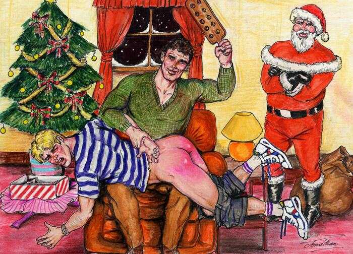 11. I was inspired to write this by a combination of H. H. Munro (Saki) delightful tail of horror "Sredni Vashtar" http://www.classicshorts.com/stories/vashtar.html and Jonathan's drawing which is now in Jock-spank and the Wayback Machine https://web.archive.org/web/20150205032351/http://www.malespank.com/spankcartoons/christmas02.jpg. Thanks to the "magic" of fiction, Conradin aged only fifteen years in the century plus since Munro wrote about him and his personal god, Sredni Vashtar, and also emigrated to America.
