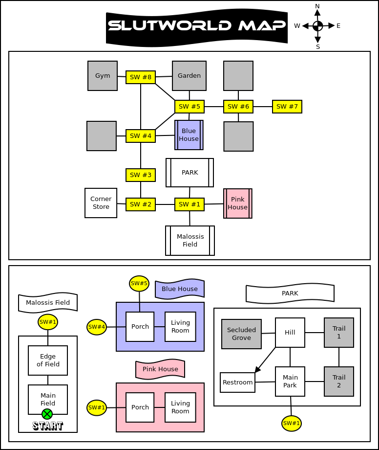 This is a map of the Slutworld game. However, since the game is in development, it may change at any time. It may also not always be as up to date as the latest upload of the game.