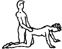 Although several positions already described can also be covered under this term, most people use this term to describe the position in which the woman kneels on her hands and knees while the man enters her from behind. Some people strongly dislike this position because of the lack of intimacy and the suggestion of male "dominance"; others like it for the freedom and strength that can be employed during the act of intercourse. The term "doggy style" has been employed to describe this position in the past, although this descriptive is inaccurate at best.