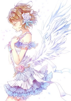 And an angel she was: a pair of puffy white wings protruded from her back and a halo hovered above her golden hair, held in place by an invisible wire. A long strip of filmy white silk hung loosely around her upper arms, leaving her shoulders bare, stitched to thin white linen that wrapped her neck and criss-crossed her chest in a scanty top that arched over her budding breasts. Beneath that flimsy cover, she was bare all the way down to the short white skirt. It was decorated with an overskirt of more filmy material stitched into petticoats that draped loosely down her slender legs. Golden sandals matched her hair, the long ties wrapped around her legs almost to the knees. Wrist cuffs and a silver necklace with a sparkling pendant completed the look.