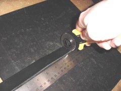 Next, take one of the Mini Punch bits that's about the same diameter as the pin on one of your Medium Rivets and screw it onto the tool. Now punch holes in the cut straps where shown on the next diagram.