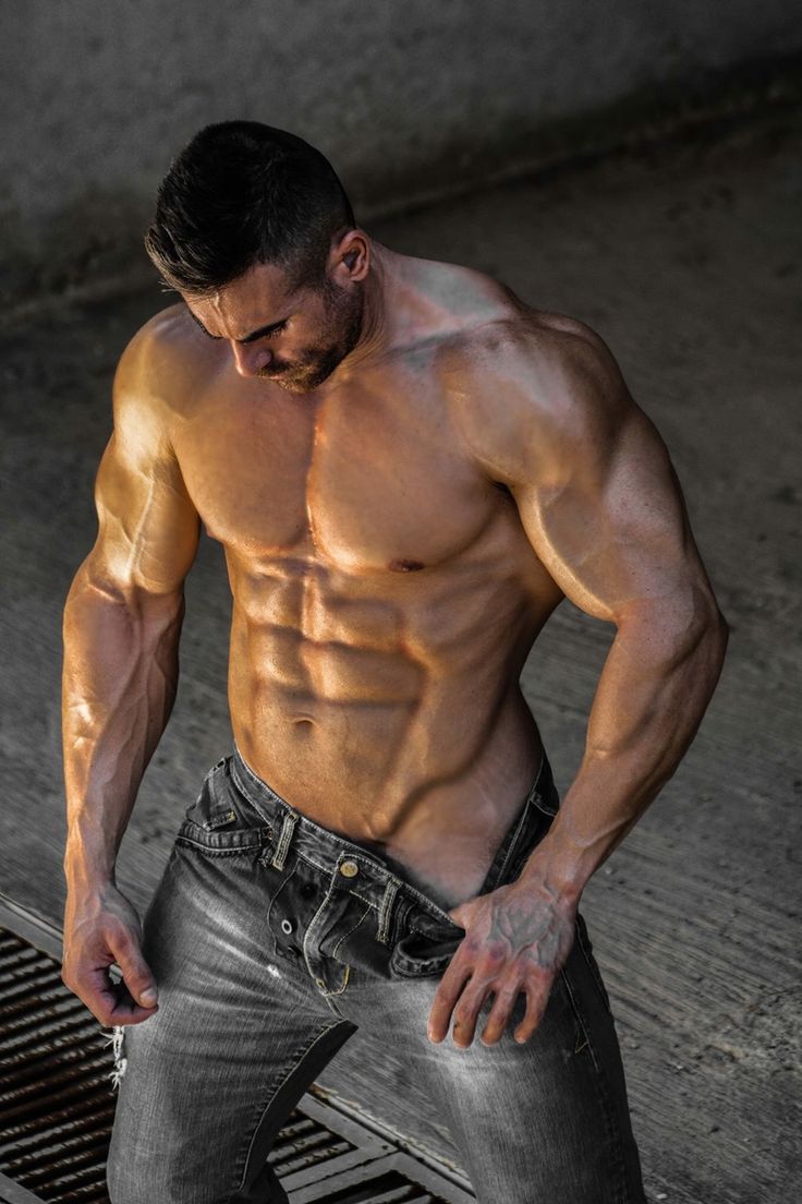 The bodybuilder pulled down his pants, exposing more of his hip and lower abdomen.