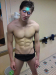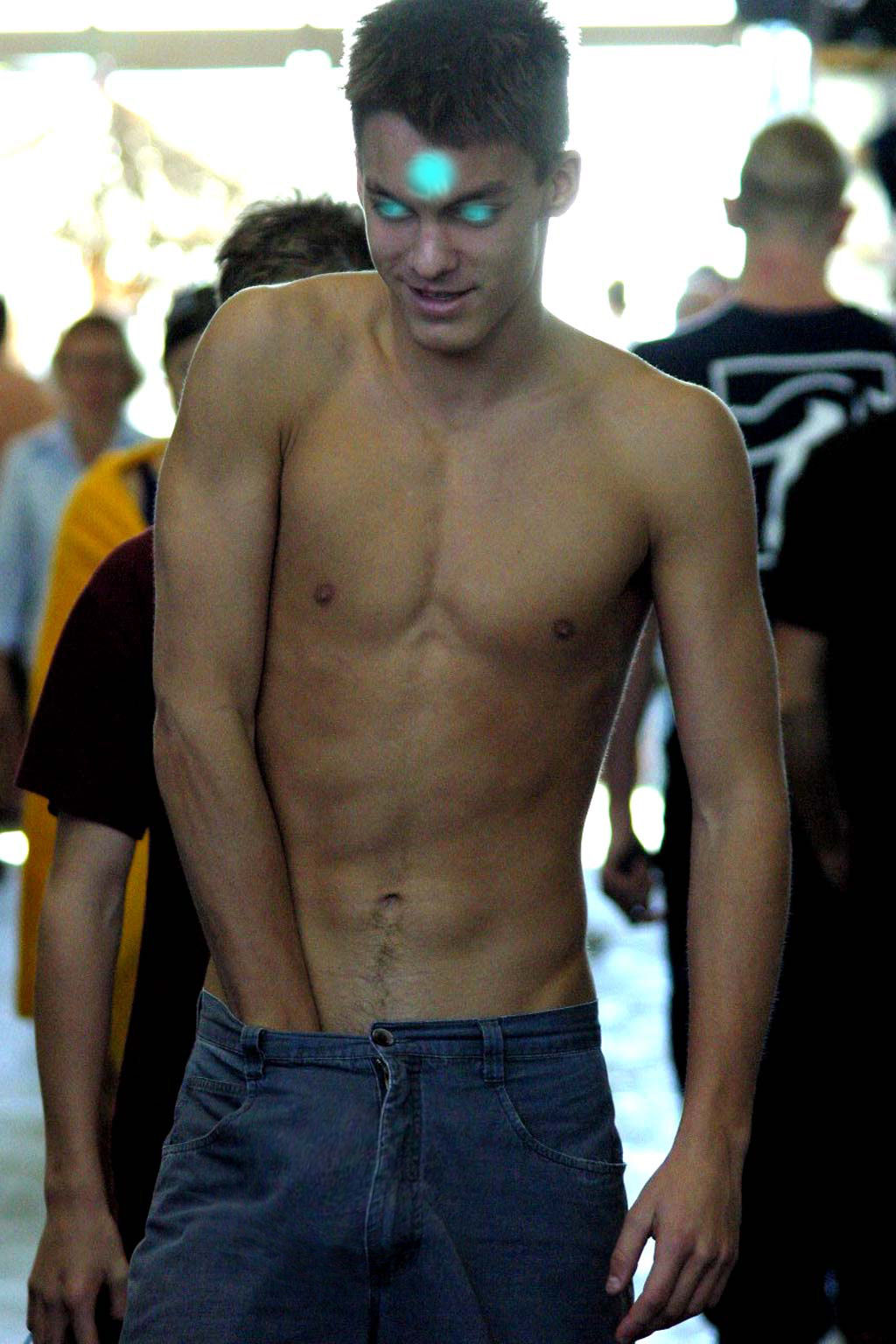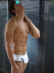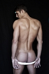Now Quinn was facing the server. He had nothing on now but his skimpy underwear, which he had pulled in back all the way below his buttcrack.