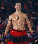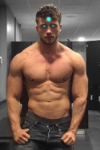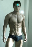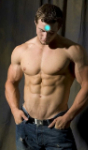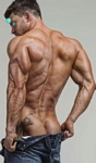 The jacket was off, and the shirt unbuttoned. He pulled it off, the chords in his arms tightening as he threw it away. His chest was broad, his abs tight, his Apollo's belt pointing down to his still concealed crotch.