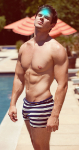He and the master were standing by the pool. He was wearing a mesh thong and nothing else. The master was nude, towering over him. The master traced a finger down the valley between the slave's pecs and abs, making him giggle. The master smiled. "Yes, you have been with me always. You will be with me always. Now go sit in that chair. Pose yourself so I may gaze upon my possession."