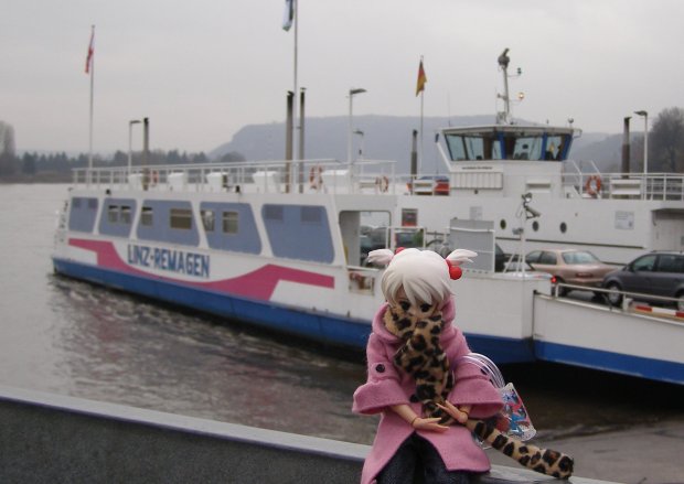 Gaby at Onkel opposite Remagen with the Apollinaris Church behind Linz on the road to Koblenz Koblenz Köln