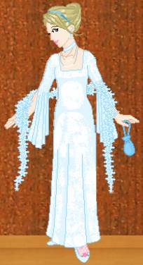 I guess she had a point there. And its not like the dress was bad or anything, just a bit erm sexy. Trust Mum to have spare clothes with her though. I quickly dressed in my knickers and I never knew Mum used padded bra's at least the one she put out for me was, all lace and it sort of enhanced by booblets somewhat although I hardly filled the cups – I'm not that big up top! The dress was new as well I guess as I can't recall seeing it before. Well I won't try to describe it except to say its that sort of stretchy panne velvet stuff in white with a square neckline and flowy sleeves – a bit sort of medieval looking. There was a matching choker and Mum gave me some holdups – pink fence net, and her pink ballet pumps, the ones with a little bow at the front.