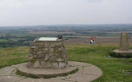 "Welcome to the edge of the Chilterns. In front of you is Aylesbury Vale, over to your left is Tring, beyond that is Wendover Wood and the remains of its hill fort, below that is Wendover itself then Coombe Hill. To our right the white lion of Whipsnade and the town of Dunstable. Down there is the London Gliding Club but for now we shall concentrate on history. Imagine if you will, that it is not 2002 but 1588, danger is spotted and the country needs alerting but there's no TV or radio to spread the word. In the distance we see a light, it is the fire of another beacon so we rush to light ours and pass the message on across the country." |