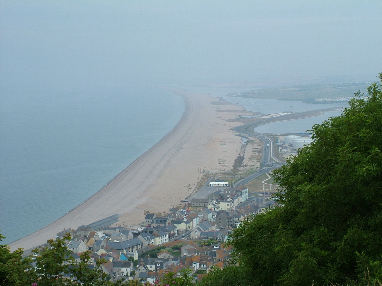 In living memory, there was a ferry between the mainland and Portland at Ferrybridge. On the landward side of the Chesil, is a long lagoon called The Fleet, which empties into Portland Harbour at Ferrybridge. There was a railway connection which ended in the nineteen sixties, but only to the bottom of the island. Now there is a road across the causeway.