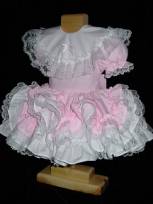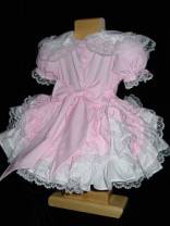 Sure enough once those silly beribboned and ruffled lace covered panties were in place you couldn't see the prints. I had a definite waddle now though and you could hear a faint crinkling sound as I walked. A new petticoat was slipped over my head, a bit fuller than the crinoline I wore earlier. The same dress was now in place buttoned up the back and the sash tied around my waist. I'd have to be careful and not do any bending or I would be flashing my diapered and frilly covered bottom to everyone looking my way!
