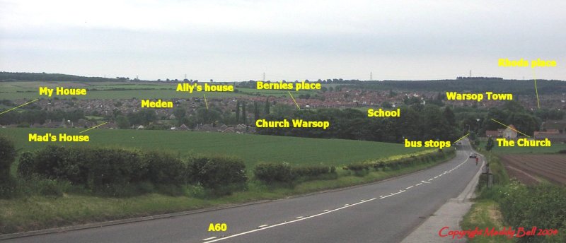 • View of Warsop looking south - I've put in the main points for you! The park is opposite the school, next to the church, which is where we catch the bus.