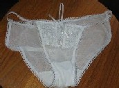 " Dan had selected his favorite, a white see-through panty with a satin bow. "