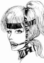 Now Ursula stepped right up to Justine. Both women were tall, and both wore high-heeled boots, but the full-figured woman in the riding outfit was a few inches taller than the slightly-built nude. Justine stood with eyes forward, not daring to look up, while Ursula looked down on the arched chest before her, pointedly studying the small, upthrust breasts with their brash oversized nipples.