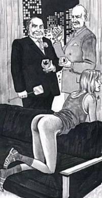 Amelia’s Pet hung limply; long hair falling down to shroud her face. By now the shrill, stoppered cries that came from the inverted head had trailed off into a series of heaving sobs. The mistress of discipline, an astute judge of such things, decided that her victim had had enough. She ran a gloved hand over those throbbing mounds, squeezed them a bit, dug clawed fingers into those meaty mounds, released them. Giving the wobbly mounds a final slap -- a kind of parting shot, she turned to her little audience…..and was greeted with a round of applause! She acknowledged their approval with slight nod of the head and an evil smirk, and then went to release the bent-over girl.