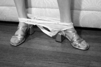 girl’s sandaled feet move apart; she let her legs fall negligently open. By now she was burning up, writhing in