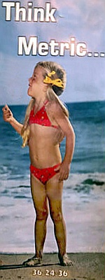 'Think Metric' poster on the wall of my living room, the one with a young