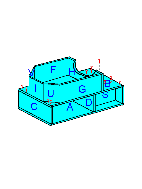Notice that panels V and U are positioned on an angle. Because of that, you may have to saw the ends at an angle to make them fit good. Or you can fill the seam with wood putty. Your choice.