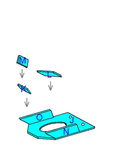 Now take three (3) parts Z, and glue and screw them to the seams of parts O and J. Then take three more parts Z and glue and screw them to the seams of parts N and J.