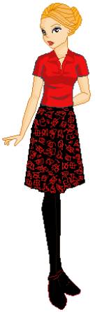 There was a squeal of brakes outside, bike brakes, not a sound you hear very often around Bond acres with Dad as a mechanic. Interest piqued, Jules went over to her window and was greeted by "flippin' skirt!" and some giggling. Down on the drive were two girls, currently the smaller one, a girl in a red fitted blouse, black and red patterned skirt and black tights was fiddling with something on her big German roadster. The other one looked like Drew's mate, Connie. So who is the, never!