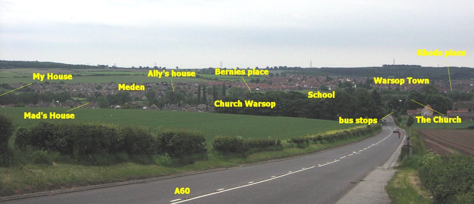 • View of Warsop looking south - I've put in the main points for you! The park is opposite the school, next to the church, which is where we catch the bus.