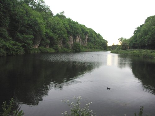 • Creswell Crags - This is the lake, there are caves all along the cliffs.