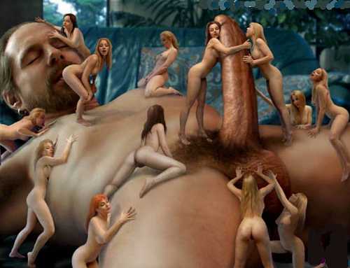 of his penis, slick-wet pussies sliding across his hard nipples and riding