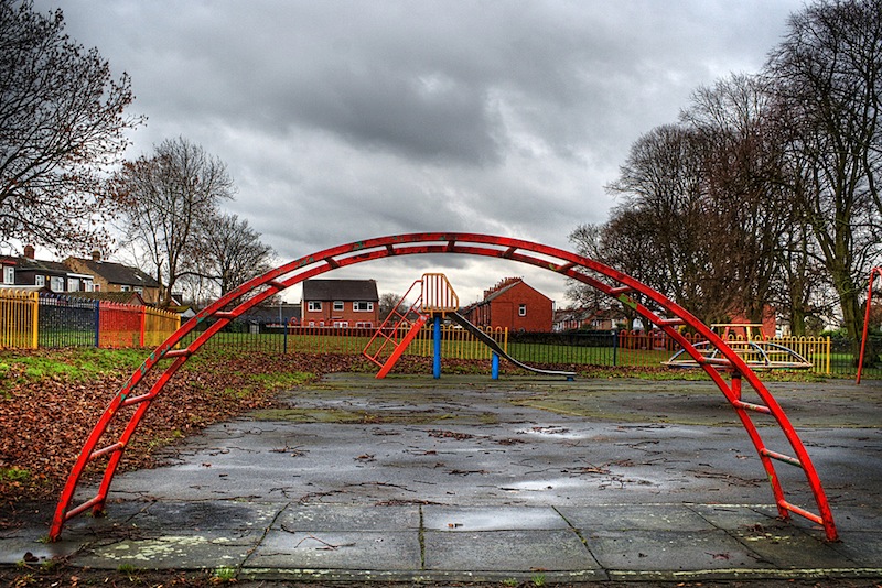 When I was a kid I used to play in this playground but it's run down now since all the kids have grown up. It's where Butch caught up with me. I had run two blocks already and made the mistake of trying to cross the playground. The far gate was locked and I was trapped. I turned to face him.