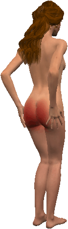 her back to completely expose her vulva to anyone standing or sitting