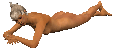 her fingertips over her lover's very exposed backside, all the while