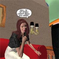 THE ROOMMATES HAVE ARE HAVING A KNOCKDOWN FIGHT ABOUT A PARTY FROM THE NIGHT BEFORE.