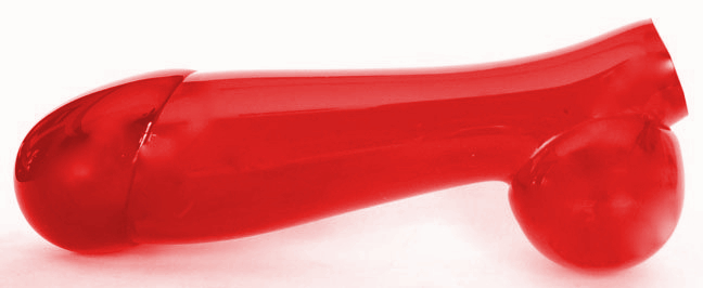 this time a red glass dildo that also featured a scrotum. This dildo was smaller, and tapered along the