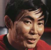 SEX: You've got your nerve. Everybody knows about me and Uhura. HOME: Behind the Helm...for now. HEIGHT: Taller than Bruce Lee. EYES: Sparkling devilish black. HAIR: Glossy, ink-dark and finely textured. WHAT IS YOUR FAVORITE TRIVID SHOW? "Pirate Captains." WHAT'S ON YOUR MOUSE PAD? I don't keep mice. Ick. FAVORITE MAGAZINE: "True Crime." FAVORITE SMELL: Lusty Communications Officer. BEST FEELING IN THE WORLD: Walking into Sickbay, about to kill Spock and Kirk and get the ENTERPRISE for my very own. WORST FEELING IN THE WORLD: Right after the Best feeling in the world. My men dissolved before my eyes and while I was spazzing the captain's sissy twin knocked me out. THINGS TO DO ON THE WEEKENDS: Whatever I want. FAVORITE SOUNDTRACK: "Romulan Wars" WHAT IS THE FIRST THING YOU THOUGHT OF WHEN YOU WOKE UP THIS MORNING? Can I kill the captain? DO YOU GET MOTION SICKNESS? God, no. I have way too much fun rolling the ship around while dodging Orions, Klingons, Romulans, renegade Rigellians, Sigmans, Deltans and Centaurians, while leaving it up to Chekov to fire at them. The sounds of puking in the background while McCoy curses me from the Surgery Room over the intercom warm the cockles of my heart. ROLLER COASTERS DEADLY OR EXCITING? I suppose they were at one time...but I outgrew that with my diapers and my dependency on breastfeeding. PENS OR PENCILS? What are those? HOW MANY RINGS BEFORE YOU ANSWER THE PHONE? I never miss the chance to listen to a potential informant. FAVORITE FOODS: Raw live octopus. Its the only way I can freak out the First Officer. DO YOU GET ALONG WITH YOUR PARENTS? Of course. I am a filial son. HAVE YOU EVER BEEN CONVICTED OF A CRIME? Outside the Empire doesn't count. If the Klingons and Romulans had their way, every man jack of us would be contestants in their deathrow game shows. CHOCOLATE OR VANILLA? Why should I have to choose when chocolate topping works so well with vanilla ice cream? CROUTONS OR BACON BITS? You *can* put both on your salad at once, you know. God. I'm not having it put on my tombstone: "He debated and chose croutons!" DO YOU LIKE TO DRIVE? Check my job description. DO YOU SLEEP WITH STUFFED ANIMALS? No, but I have rare cloth sculptures of the Drunken Kung Fu Gods. IF YOU COULD HAVE ANY KIND OF PET, WHAT WOULD IT BE? I don't do pets. IF YOU COULD BE ANY TYPE OF ANIMAL, WHAT WOULD IT BE? Something dangerous. THUNDERSTORMS, COOL OR SCARY? I love 'em. Especially since Uhura started taking Ruphenol to deal with 'em. IF YOU COULD MEET ANYONE DEAD OR ALIVE, WHO WOULD IT BE? Gladiator Alexandru. Over 2,000 uncontested kills in two years. Can you imagine? Drool. Autograph. FAVORITE ALCOHOLIC DRINK: Excuse me, but have you noticed my ethnic type? Alcohol puts me to sleep. Do you think a sopophoric is a good idea for a security chief? WHAT IS YOUR ZODIAC SIGN? I was born in the year of the Tiger. EAT THE STEMS OF BROCCOLI? You don't waste food in the Empire. The penalties are harsh. GUYS--WOULD YOU EVER ASK A GIRL FOR HER SHIRT? I have. Lots of times. IF YOU COULD HAVE ANY JOB YOU WANTED, WHAT WOULD IT BE? Commodore of the Warships. Eat my ion trail, stinking Roms! IF YOU COULD DYE YOUR HAIR ANY COLOR, WHAT WOULD IT BE? Like, hello? IF YOU COULD HAVE A TATTOO, WHAT AND WHERE WOULD IT BE? A realistic knifehilt sticking out of my chest with TWIST TO REMOVE on the hilt. HAVE YOU EVER BEEN IN LOVE? Never graduated there. Lust is more important. DESCRIBE YOUR DREAM WEDDING: No such thing. Unless she was Uhura coming with a huge dowry, and under the influence of a ticking biological clock: "Ohh, Hikaru! We could make pretty babies!" WHAT IS ON YOUR WALLS IN YOUR ROOM? Knives. A Yari. A couple of things that escape metal detectors. Someday when Chekov offs Kirk (yeah right) I'm grabbing that fineground ceramic singlepiece Officer's Dirk he thinks I don't know about. IS THE GLASS HALF EMPTY OR HALF FULL? Always assume the worst. WHAT IS YOUUR FAVORITE SNAPPLE? Snapple? Sounds pansy. ARE YOU A RIGHTY, LEFTY OR AMBIDEXTROUS? Righty. Lefties are all gaijin. DO YOU TYPE WITH YOUR FINGERS ON THE RIGHT KEYS? Is there another way to do it? IF YOU COULD BE ONE GARDENING TOOL, WHAT WOULD IT BE? The reaping scythe. Its a very respectable martial weapon in Okinawa. WHAT'S UNDER YOUR BED? Things. WHAT IS YOUR FAVORITE NUMBER? Why would I have one? WHAT WAS YOUR FIRST CAR? Never needed one. It was always easier, cheaper and more fun to hotwire the wheels I needed for the evening. WHAT IS YOUR FAVORITE DREAM CAR? See above. FAVORITE SPORT TO WATCH: "Truth or Execution." SAY ONE NICE THING ABOUT THE PERSON WHO SENT THIS TO YOU: Nyota is easy on my eyes. OF ALL THE PEOPLE YOU SEND THIS TO, WHO IS LEAST LIKELY TO RESPOND? Kyle. He's in the Agony Booth again. It was for his own good.