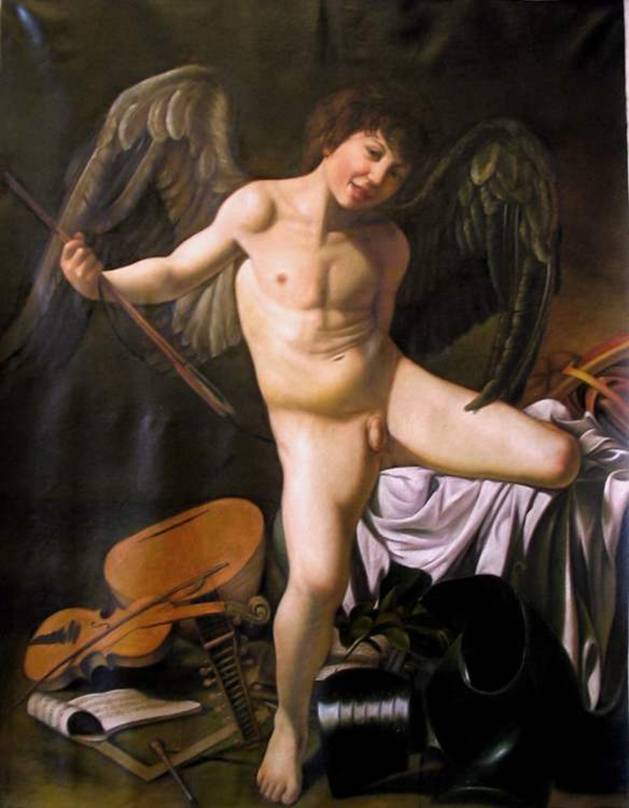 We don’t have to go very far in art history to find another famous pornog - oops, famous pervert, sorry, famous painter, Caravaggio. He is noted for the sensuous young boys he loved to paint, um, yes, we'll leave it at paint. The homoerotic and pedophilic qualities of this painting have always been apparent to all. The luscious soft skin and under developed male genitals give this boy a feminine quality that must have appealed to all the perverts. You can find this image all over the Internet and library books with no age restrictions, because it is Art. No where does this pedophilic voyeuristic homoerotic painting violate community standards. I mean, except here on our website where we would carefully hide it behind the codes.