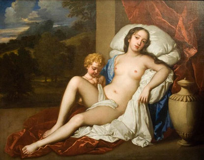 And speaking of harlots to the King, here is a famous actress, Nell Gwyn, who was mistress to Charles II, King of England, proudly displaying what made her attractive to the King. This and other paintings of Nell Gywn certainly weren't done nude or with her breasts showing in her protraits because of her acting, they were because of the erotic. Nell took up acting and promotion of her acting at 14. There are several portraits of Nell displaying her obvious charms, none so far that have aroused public outcry, and certainly didn't do so even in Restoration England, coming so soon after the Puritan intervention which people quickly tired of. The forced piety not really suiting most folks who only want to pretend to be good while they enjoy wenching and beer. Here's to Nell, the first to use the casting couch to fame and riches.