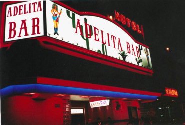 I turned and looked at Adelita's. Las Vegas it wasn't. But it also wasn't as rundown as I had feared. A nice dive is how I'd describe it. A large lighted white sign surrounded by bright red, Adelita's Bar with cacti as the background. Below a garish blue light ran the length of the sign. On it was a woman holding a rifle. Now you might be wondering why a woman with a rifle. It seems that during the Mexican revolution women accompanied the men on their campaign. The women came to be called Adelita's. I guess they were the Florence Nightingale's of Mexico. Except they weren't nurses. Different men fight for different reasons.