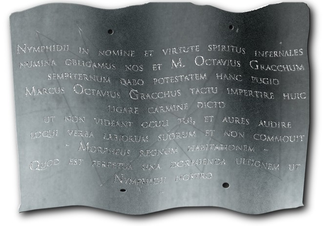 "It seems that the boy was not wearing his bulla," Agathon explained. (see above for the significance of the bulla) "So he did not have the protection of the amulet and neither the protection of the amulet (Jupiter's Eagle) on his slave collar (which he had worn previously). If someone had laid a some kind of a curse on this night, or on the dagger, then this might account for the 'κῶμα'. As for the unnaturally deep 'sleep', I cannot say how long it will last and I am unsure how to treat it. It seems to be beyond my skill. The answer may lie in a κατάδεσμος (tabella defixionis, curse tablet), if one can be found."