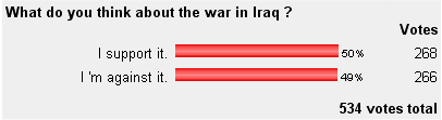 of the poll : "How do you feel about the war in Iraq ?"