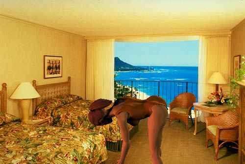 He positioned the notebook so he could see it from the window of my hotel room. The focus was sitting, pointing out the window. He would have to set it up so it would point in the right direction for as long as it took the computer to do its work. It was time, he picked up the focus, and walked to the window. In the distance there was a large crowd. The Hawaiian beach below his room was crowded with photographers, models and hangeroners. The beach had been rented by a large modeling agency for this major photo shoot. He set up his test with the photo shoot in mind. The shoot was publicized as the largest of its kind, having over 30 top models, including many supermodels, in attendance. They rented the public beach at great expense, as it was the biggest most popular in Waikiki.