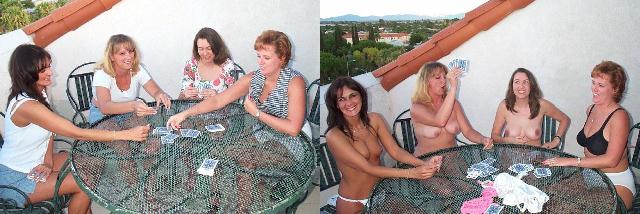 "Well, stick your queen in the elastic of your panties," I told her. "You'll need both your hands free to do a thorough job and you wouldn't want to loose your card. If you do, one of these other ladies might have to do it."