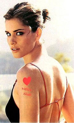 She looked at him and said, "I don't know any Neil, I'm dating Brian Van Holt." The reporter just smirked and snapped another picture. After the pictures, she sat and signed some autographs. She was getting tired of the whole tattoo thing. As she was signing autographs, a man walked up who she thought she recognized. He was in his thirties, about 5'10" with sandy hair. At first she thought he was holding something strange in his hand, but then realized it was just a fancy cell phone. "Do I know you?" She said, smiling at him. "I don't know, I'm Neil Merritt, I'm staying at the Downtown Hilton, room 541. Do you know any Neils?" "I-I guess I was mistaken," She rubbed her shoulder nervously. She didn't know why he had given her his hotel room number, but she finished signing the photo. She signed his photo, See you tonight, Amanda Peet, then she kissed it, leaving a lipstick print by her autograph. As he walked away, she suddenly realized what she had done. Why had she done it? |
